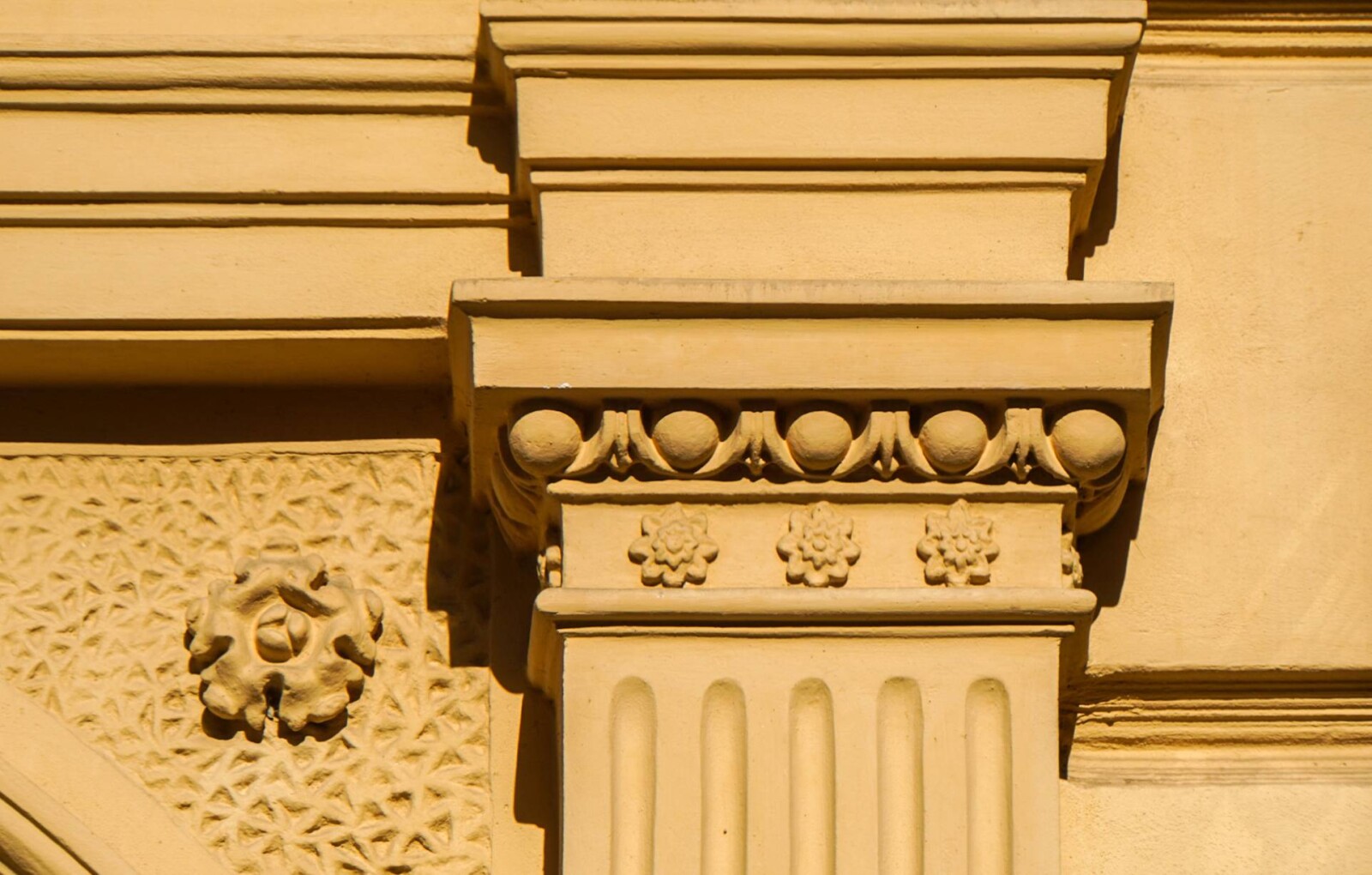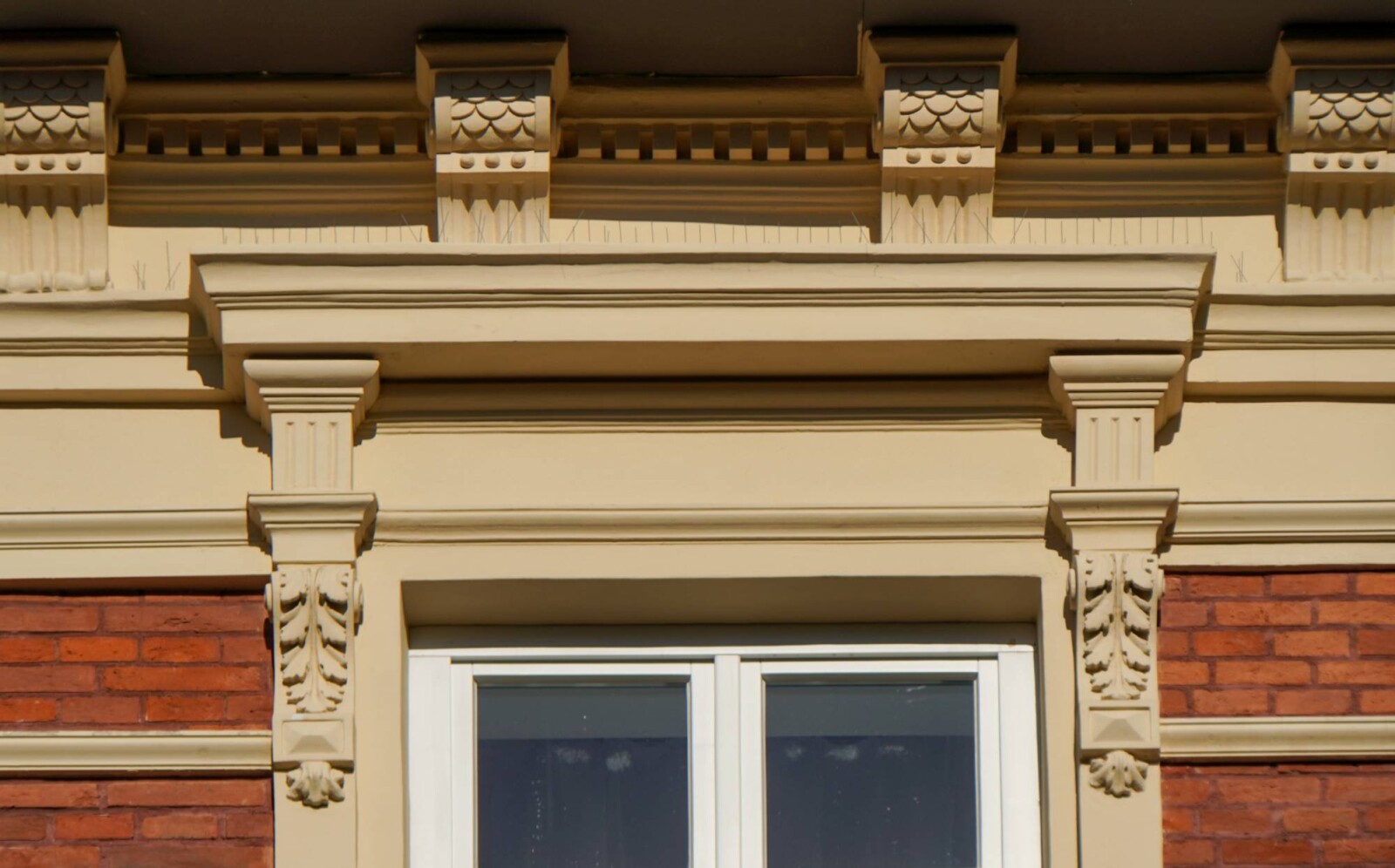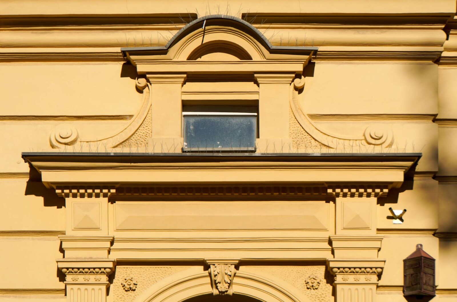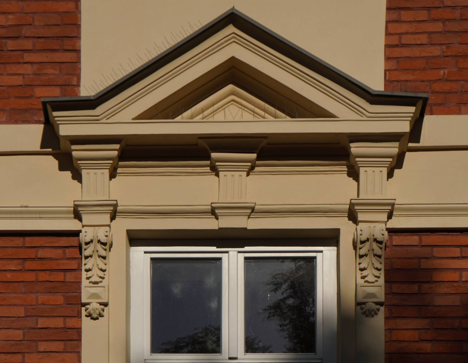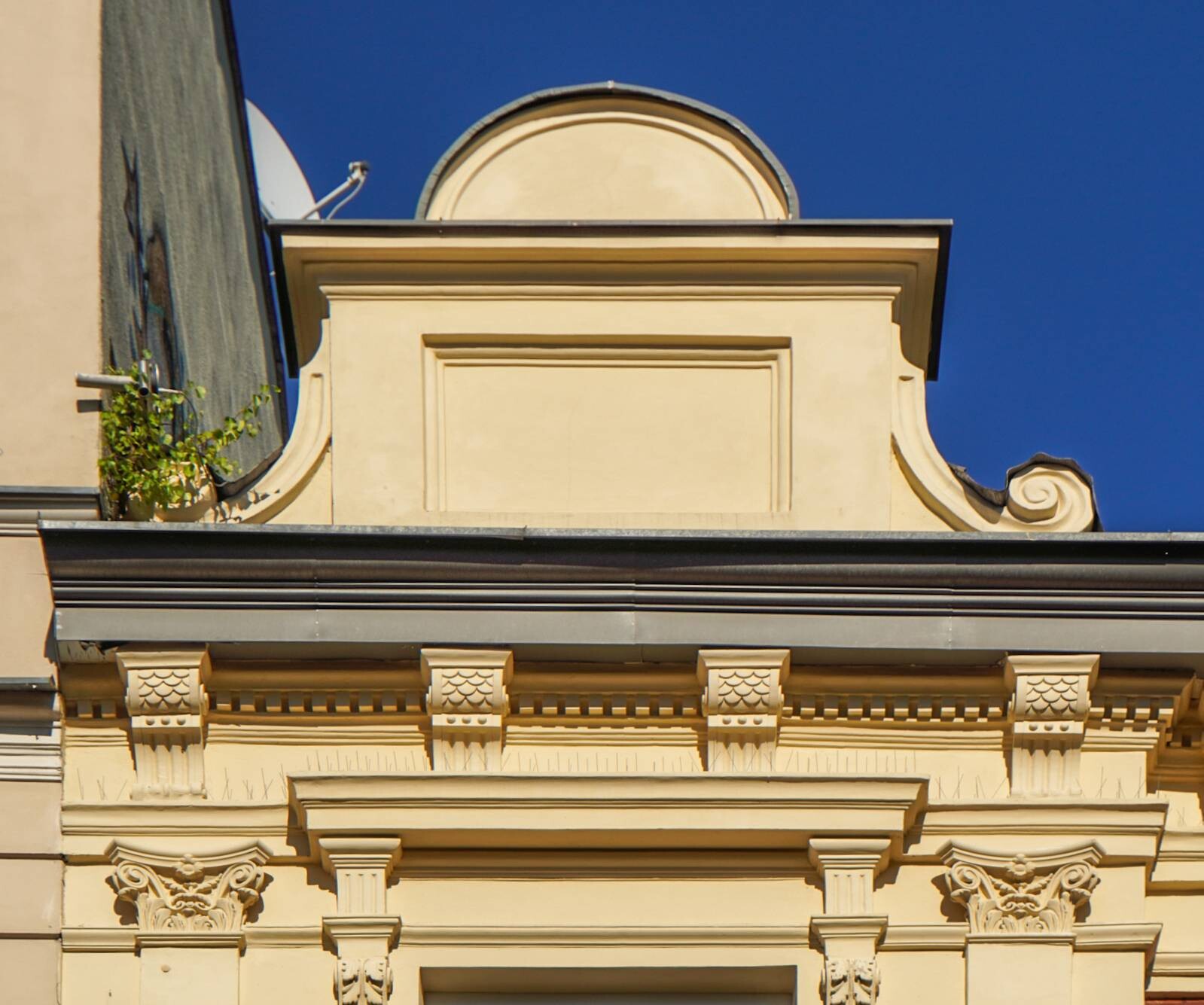 Każda z kondygnacji dostanie nieco inna oprawę architektoniczną. Parter zgodnie z ówczesną modą zostaje “odcięty” od reszty budynku poprzez zastosowanie boniowania, natomiast oprawy okien na pierwszym i drugim piętrze otrzymują zróżnicowane naczółki, czyli formy znajdujących się nad nimi zwieńczeń. Dla pierwszego piętra przybierają one formę trójkątów, zaś dla drugiego prostych, odcinkowych gzymsów. Zwieńczeniem ściany jest gzyms z rytmicznie umieszczonymi konsolkami, które podtrzymują okap dachu.